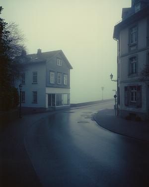 Amidst the morning mist, the old town comes to life with a mysterious allure.
